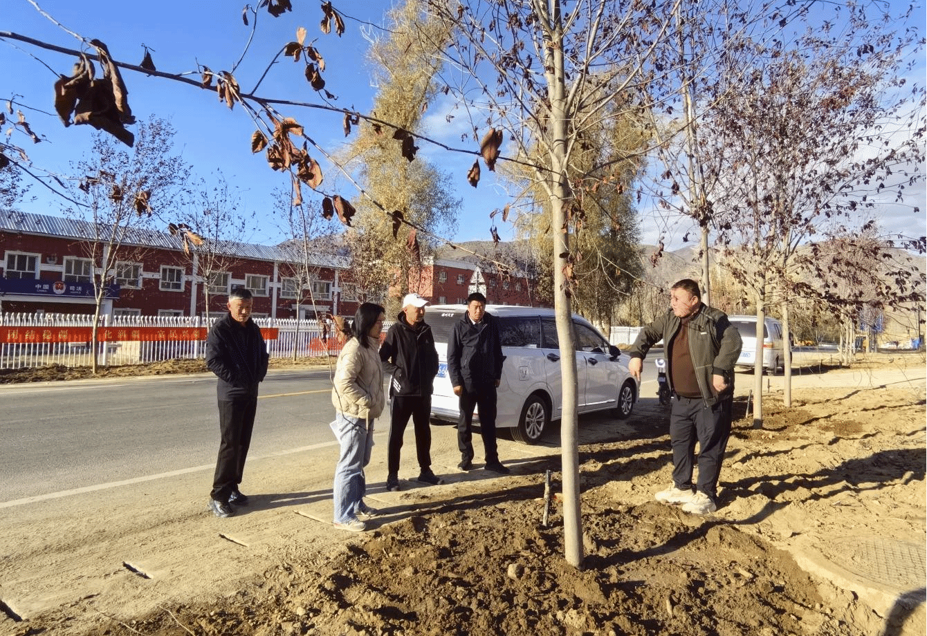 2025年10月22日,富蕴县老科协专家来到铁买克乡政府指导绿化种植工作。提出加强紫叶稠李、大叶白蜡的浇水量,并做好冬季牲畜防啃食。