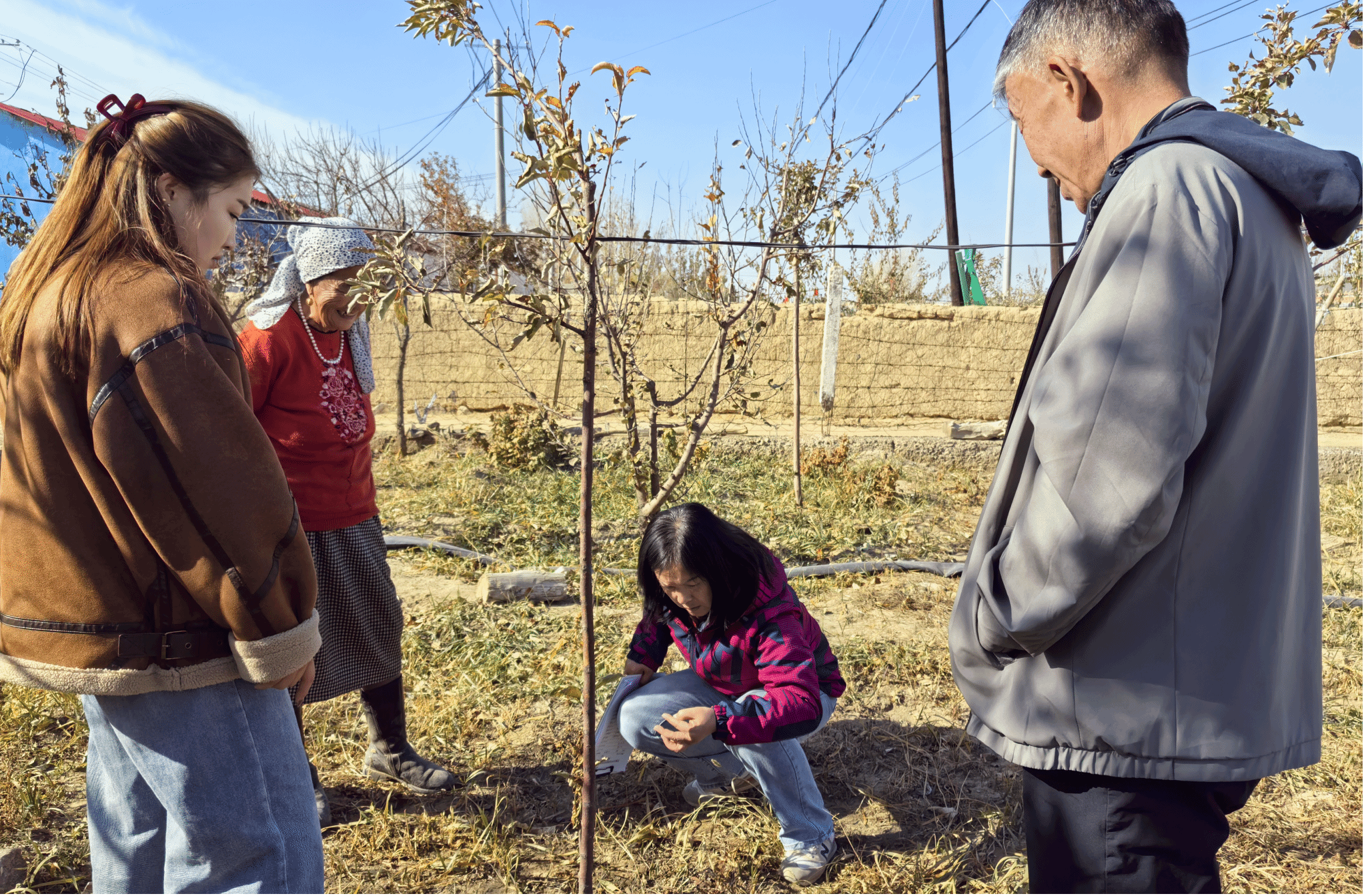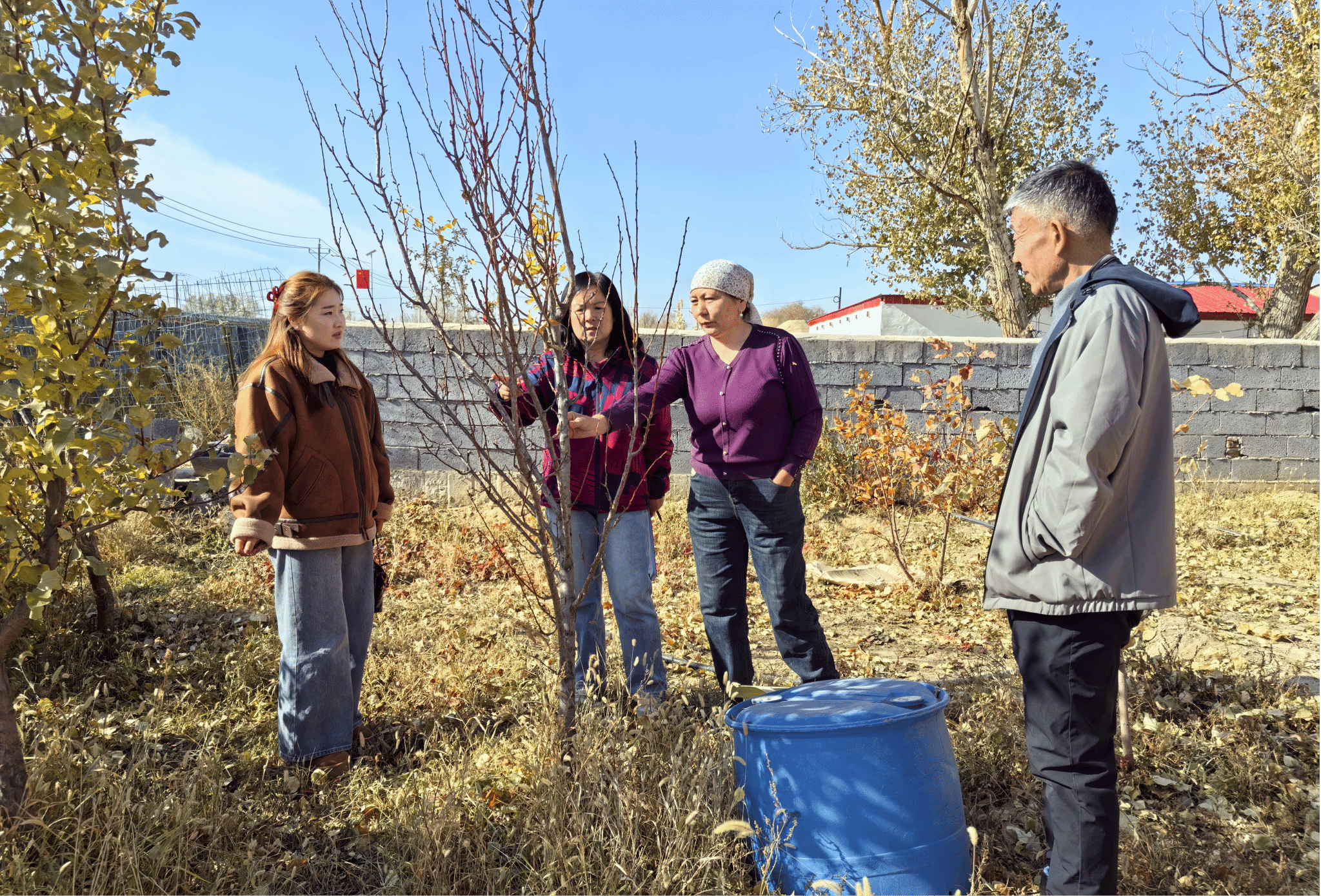 当日,老科协专家们一抵达玉什克日什村,便马不停蹄地前往村区绿色通道和农牧民庭院,实地查看果树的生长状况。在村区绿色通道,专家们针对种植的榆树提出了加强冬灌水的关键建议。他们指出,充足的冬灌水能够有效提高土壤墒情,增强树木的抗寒能力,为榆树安全越冬和来年的茁壮生长奠定坚实基础。