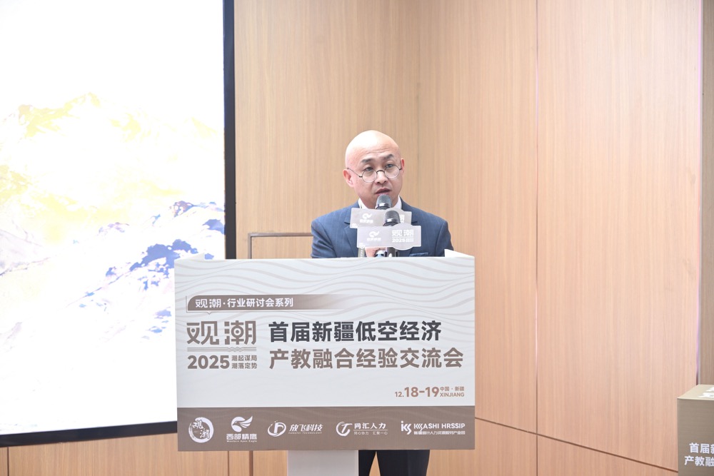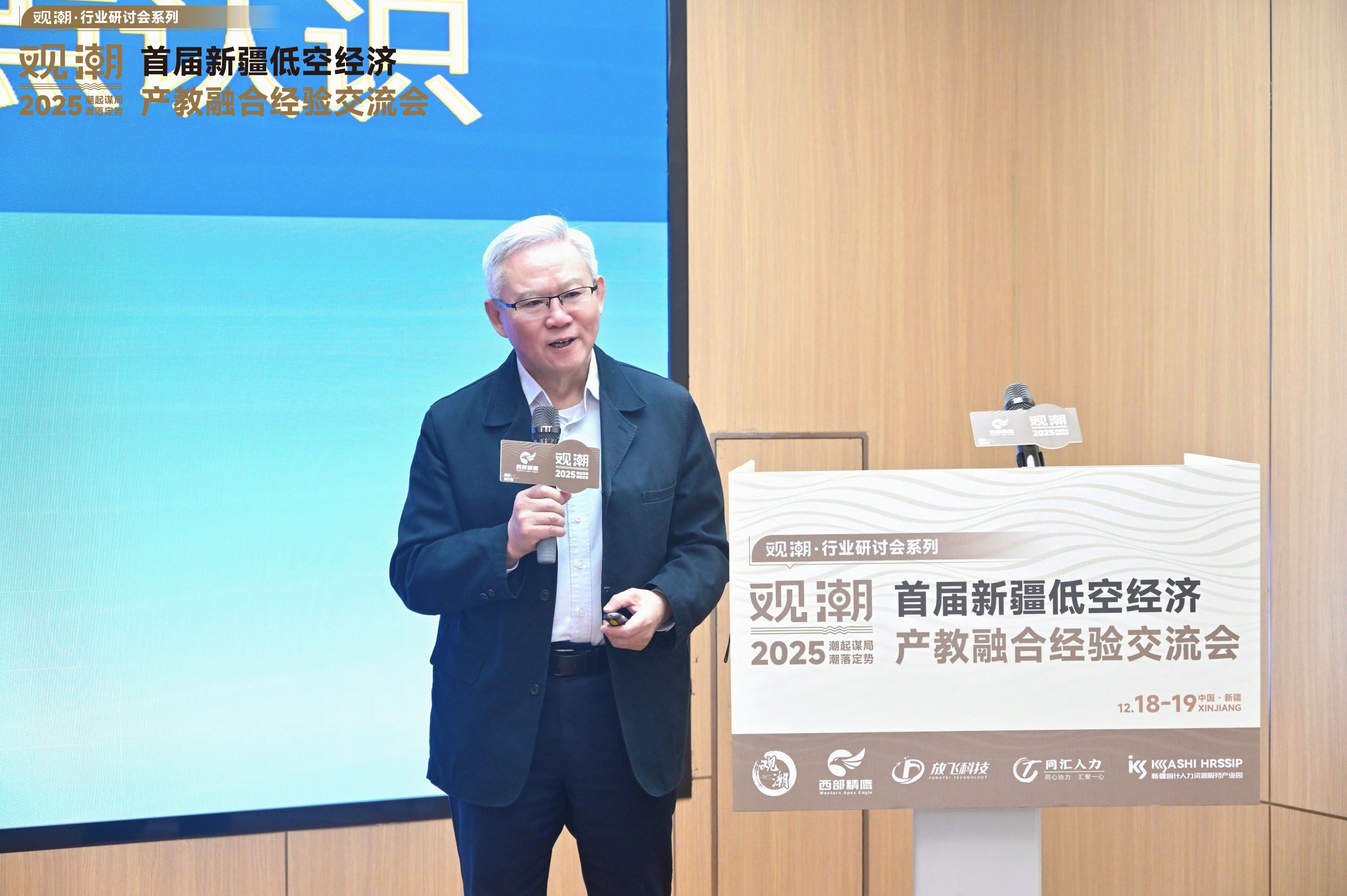 2025年12月17日至18日,由中国航空学会指导、喀什地区航空航天学会、新疆喀什地区老科技工作者协会联合发起、观潮会集策划承办的“首届新疆低空经济产教融合经验交流会【喀什站】”,在新疆喀什人力资源服务产业园成功举办。本次会议汇聚了来自中国航空学会的顶尖专家、新疆各地州及兵团的行业代表、以及内地知名企业家与院校同仁,共同探讨低空经济在边疆地区的场景应用与人才培养新模式。