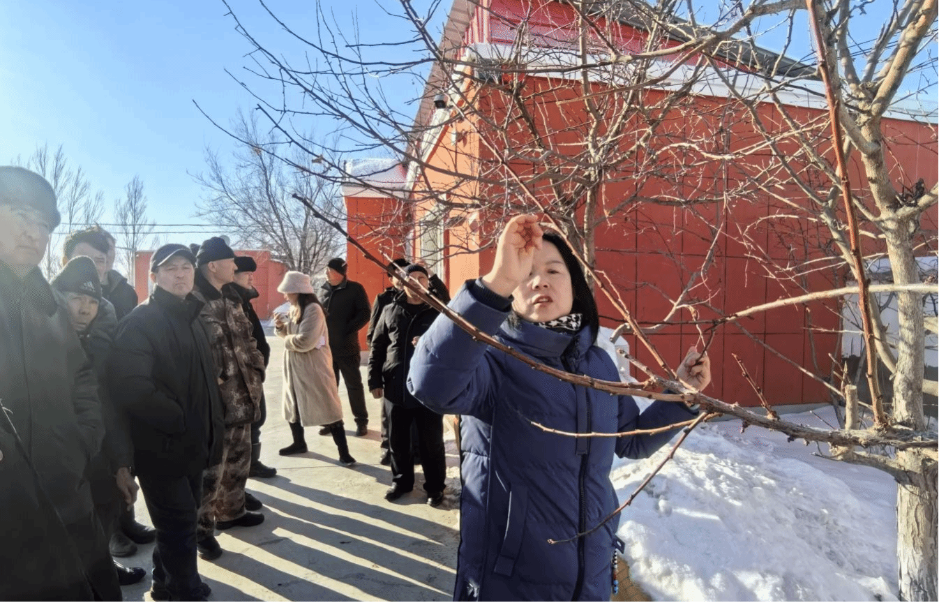 专家手把手示范果树修剪技法,通过疏枝、短截等实操教学,帮助农牧民掌握技能。