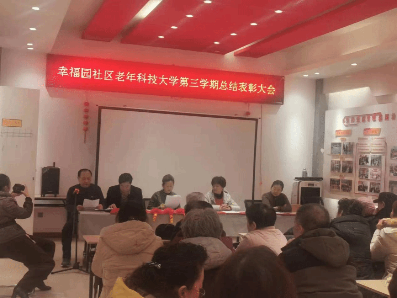 2026年1月8日,新疆老科协老年科技大学乌鲁木齐老科协分校幸福园社区教学点举办了2025学年总结表彰会。乌鲁木齐老科协应邀参加会议,并组织专家开展了2026科技之冬培训服务活动。幸福园社区书记出席会议并讲话,就教学点发挥银发力量、融入社区治理服务发挥的积极作用给予肯定和赞赏。幸福园社区教学点学员队伍有128人,当天85名学员积极踊跃地来参加了总结会。总结会表彰了自治区老科大、市老科协分校及教学点优秀学员15人。