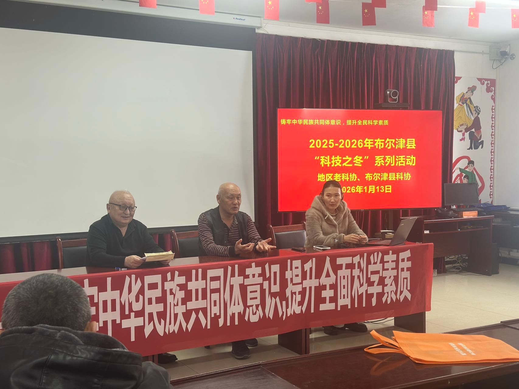 2026年1月13日,阿勒泰地区老科技工作者协会科技服务团队以地区“科技之冬”活动为抓手,应布尔津县科学技术协会邀请走进布尔津县杜来提乡阿肯齐村和阔斯特克镇萨尔库木村开展“畜牧养殖”专题培训,有效推进了布尔津县2025—2026年度“科技之冬”活动走深走实,推动科技服务直通乡村生产一线,将实用技术精准送达田间牧场与农牧户手中。这天室外天寒地冻,室内暖意融融,一场别开生面的“科技之冬”培训,让冬日的村委会会议室热闹非凡。